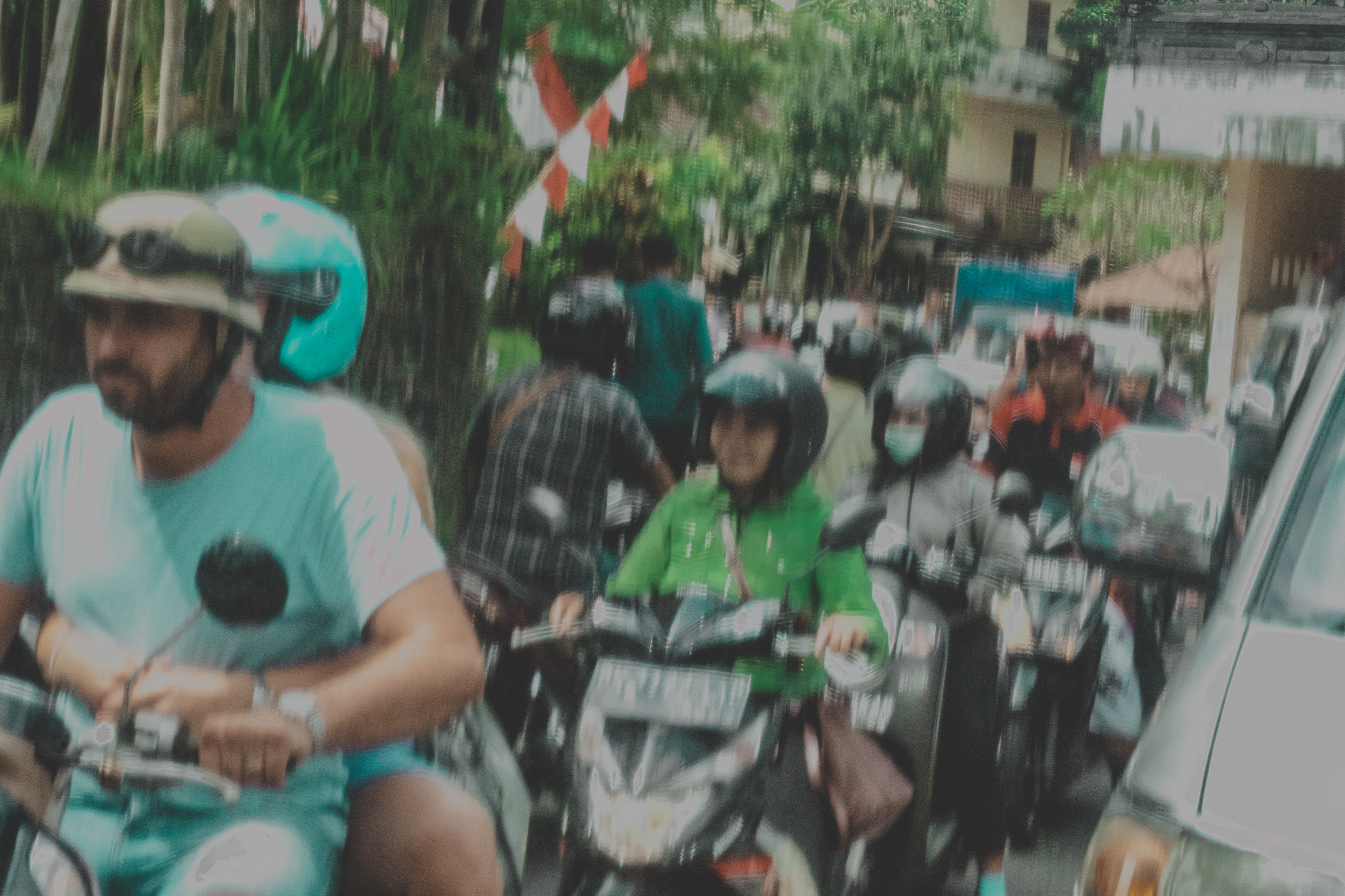 We stood 3 in a half hours! until finally we were able to move on to tracking down our driver. We exited the doors to outside and were instantly among the hustling and bustling of thousands of scooters and tall jungle plants and palms. In line Bali was being cursed. Once outside the trek to get there was worth it. It was nothing like the quiet peaceful pictures we had seen.