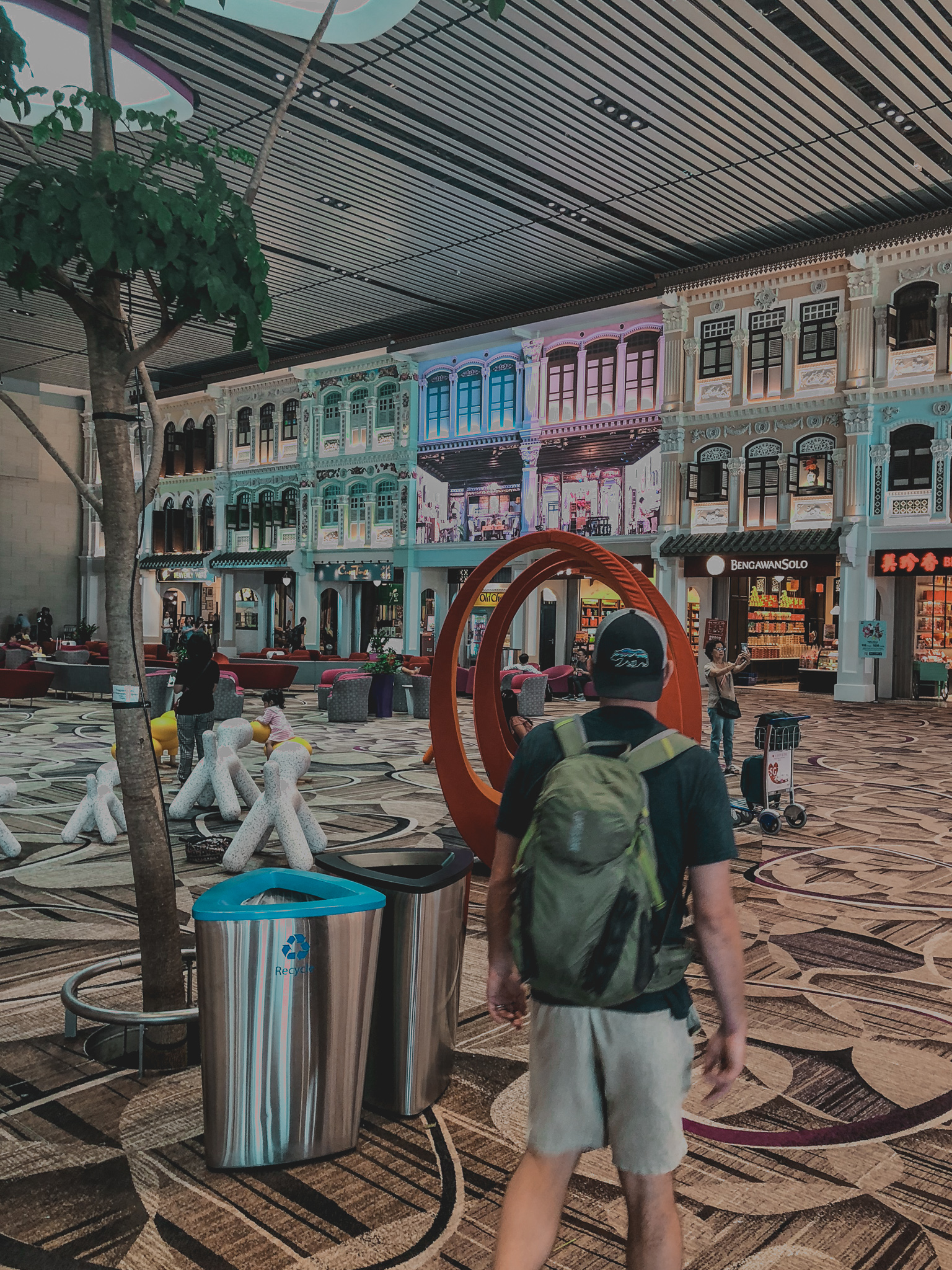 We headed from Chicago to a stop in LA. Five hours in the air.  We were each newbies to LAX, and we were expecting a nice night in a nice, movie star like airport. HA! This airport made our list of most hated. All of the seats in the United terminal were plastic with unmovable arms, making it entirely inconvenient to rest, the floor was so filthy that you did NOT want to sit on it or truly be anywhere near it, and the food choices were lacking. It was a major disappointment, and we had 6 hours to burn till the next flight left at 11 that night.  The 18 hour flight from LAX to Changi Airport in Singapore loomed over our tired heads.
